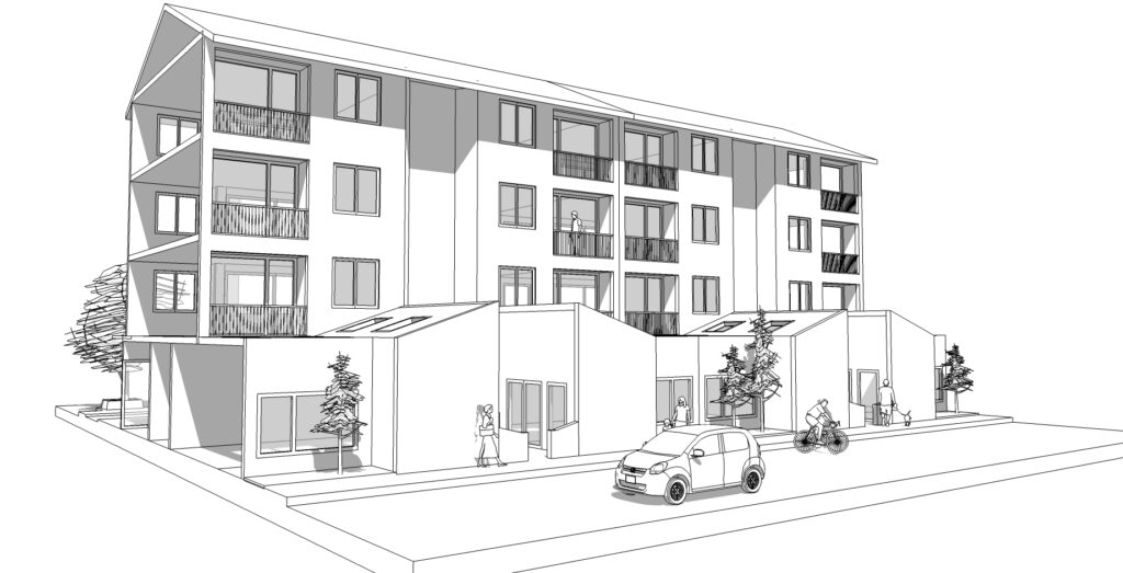 Voorstel om de anonieme achterkanten van de blokken te openen naar de straat en herindeling van de woningen.